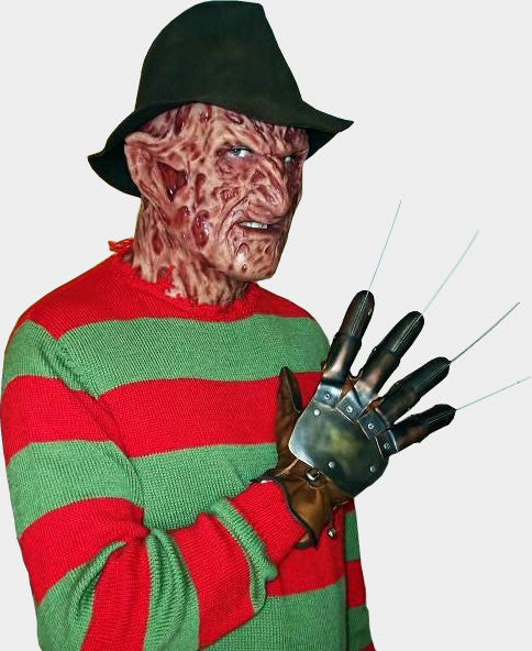 Вряд ли кто станет отрицать, что образ старины Фредди плотно засел в головах поклонников тёмного кинематографа. Стоит услышать фамилию Крюгер, как перед глазами тут же встают обоженное лицо, полосатый свитер, шляпа. Детали делают персонажа живым, реальным. Запоминающимся. А главной визитной карточкой Фредди, пожалуй, можно назвать фирменную перчатку с лезвиями.