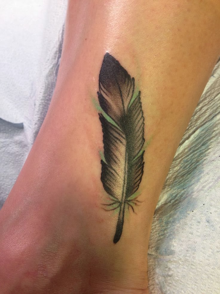 Перо отлично смотрится на руке, запястье, лодыжке, спине, а иногда, даже на пальце.