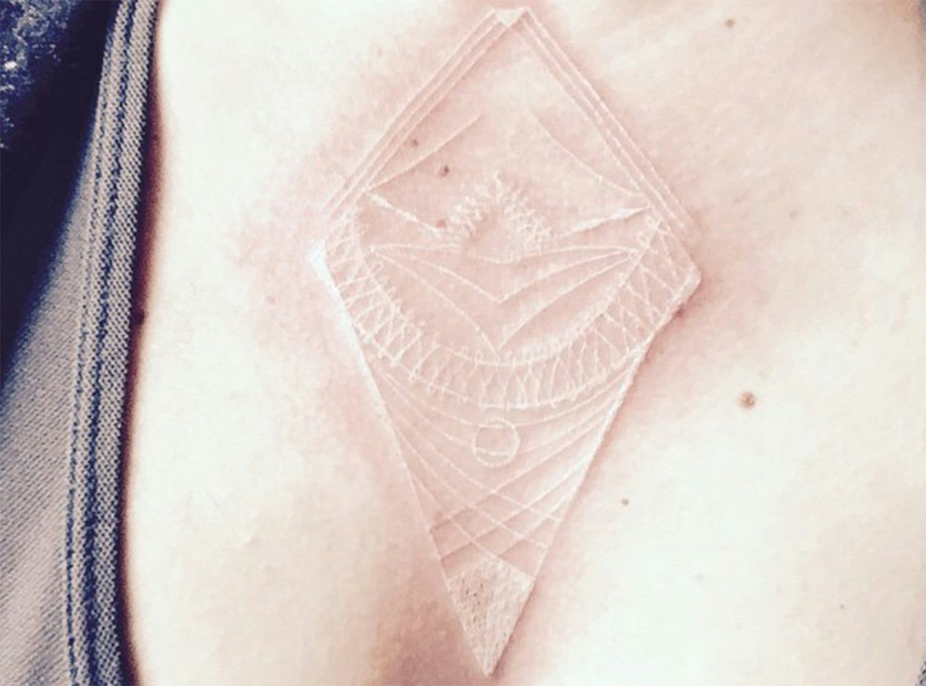 Двойные наложенные друг на друга треугольники одинакового размера — это алхимические символы, которые были введены в сферу боди-арта.