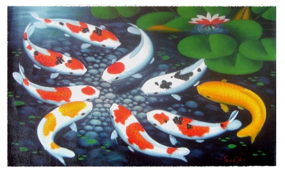 Очень хорошо будет смотреться картина в стиле гохуа, на которой изображено девять карпов. Гохуа является традиционной китайской техникой живописи, картина в этом стиле может только усилить действие талисмана. Эти картины очень часто используются в фен шуй, кроме того, они очень хорошо смотрятся и смогут украсить практически любой интерьер. Они выполняются цветной тушью или красками на бумаге или ткани. В них очень точно прорисовываются все детали, каждая из деталей имеет большое значение. Сегодня эта техника может иметь различные стили исполнения.